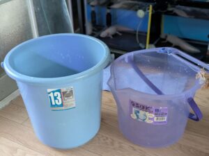 我が家では、2つの水槽分の水が入る45Lの大きなポリバケツをホームセンターで購入しました。一度に水作りができるので便利です。